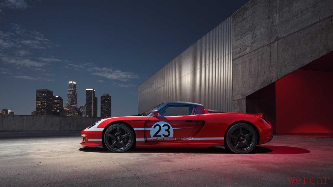 在保时捷的历史长河中,1970 年是一个永恆的转捩点。当年 Hans Herrmann 与 Richard Attwood 驾驶着编号 23 的 917 短尾赛车,为保时捷赢得了首个勒芒 24 小时耐力赛全场总冠军。那套红底白条纹的 Salzburg Design 涂装,自此成为赛车界的图腾。时至今日,这份传奇血统透过 Porsche Sonderwunsch 计划,在一台出厂已 20 年的 Carrera GT 身上重新绽放。这并非单纯的修复工程,而是一场跨越时空的艺术创作。
