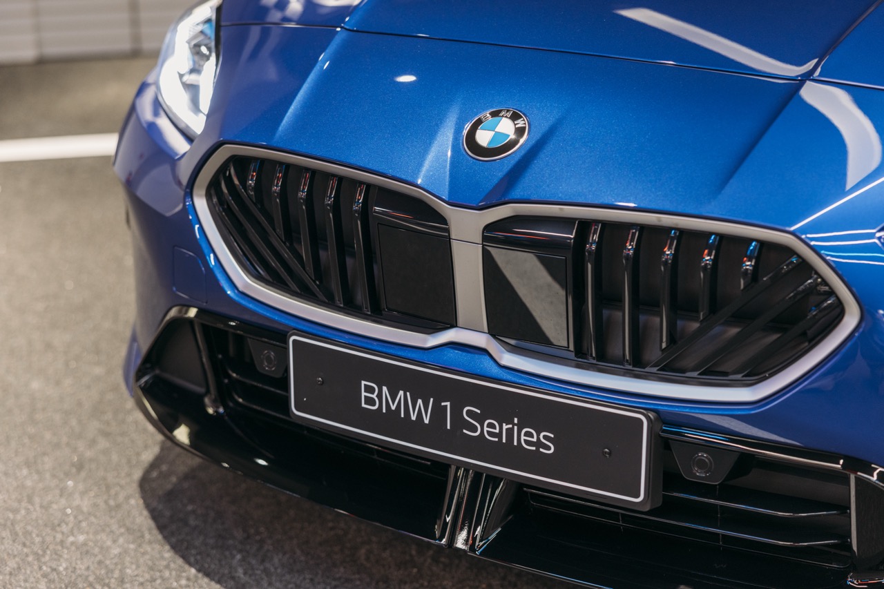 在外型设计上,全新 BMW 1 系延续了品牌标誌性的动感比例,拥有长车头、短悬垂以及宽阔轮距等特徵 。车身尺寸经历了细微调整,车长增加了 42 mm 至 4,361 mm,而高度则提升 25 mm 。最引人注目的视觉焦点在于其更为扁平且贴近路面的车头造型,配合纵横交错纹理的双肾形鬼面罩,以及内嵌垂直式日间行车灯的主动式 LED 头灯,营造出一种极具侵略性的前卫感 。车侧线条由上扬的腰线勾勒出张力,C 柱位置特别加入了“1”字元素装饰,细节之处显尽心思 。若选择 M Sport Edition,车身更会换上特大进气口前保险桿、M 专属侧裙及 3D 扰流后保险桿,并将轮圈由标準的 17 吋升级至 18 吋 M 轻合金样式,完美诠释纯粹的运动美学 。