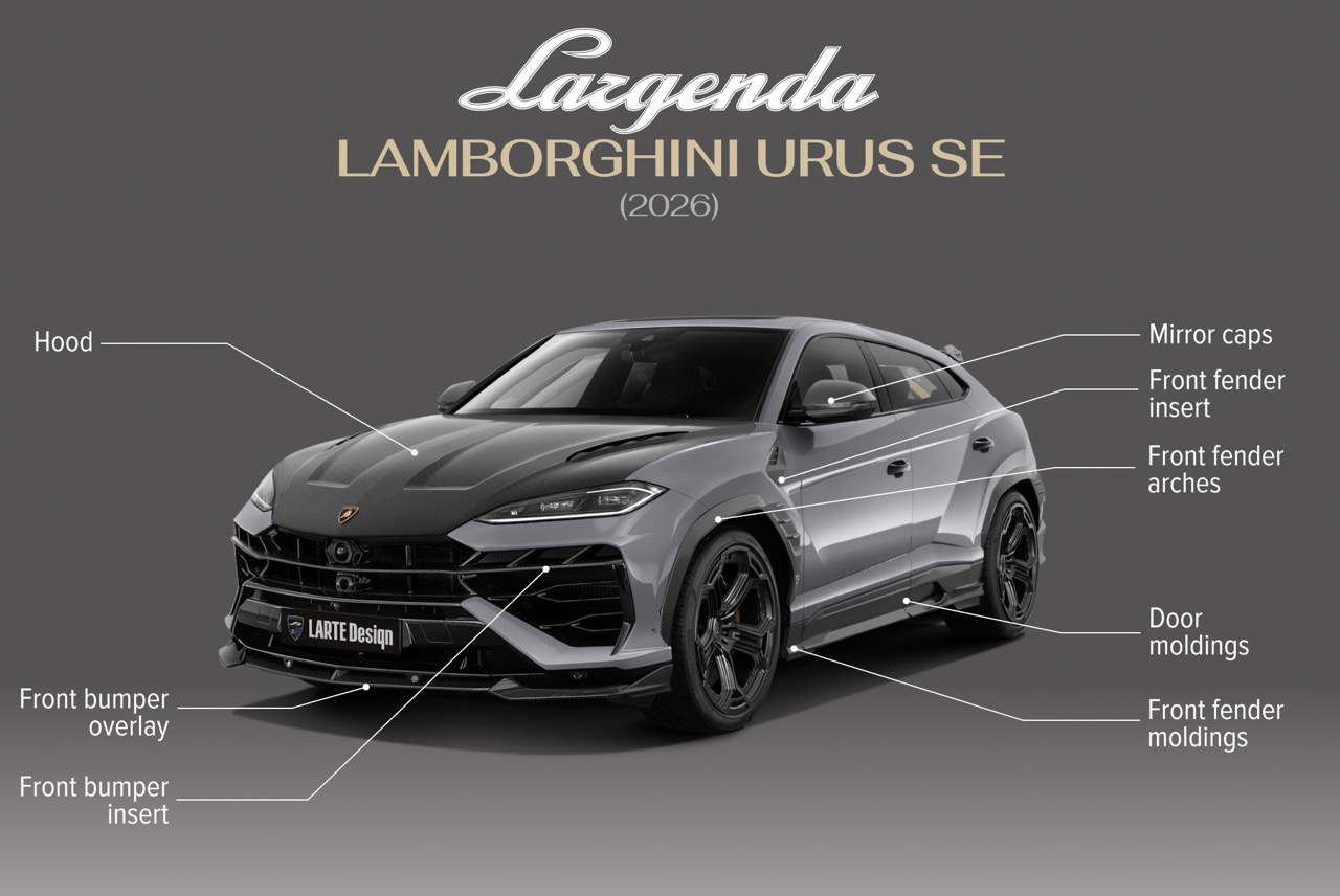 Lamborghini 正式迈入插电式混合动力时代,Urus SE 作为品牌旗下首款 PHEV 超级 SUV,凭藉着高达 800 匹的综效马力与多样化的驾驶模式,被公认为目前最完备且专为道路开发的 Urus 车型。针对这款集科技、性能与日常实用性于一身的旗舰车款,德国改装名家 LARTE Design 决定为其注入更具侵略性的视觉灵魂,推出名为 LARGENDA 的专属空力套件,将这款混合动力怪兽的姿态提升至全新层次。