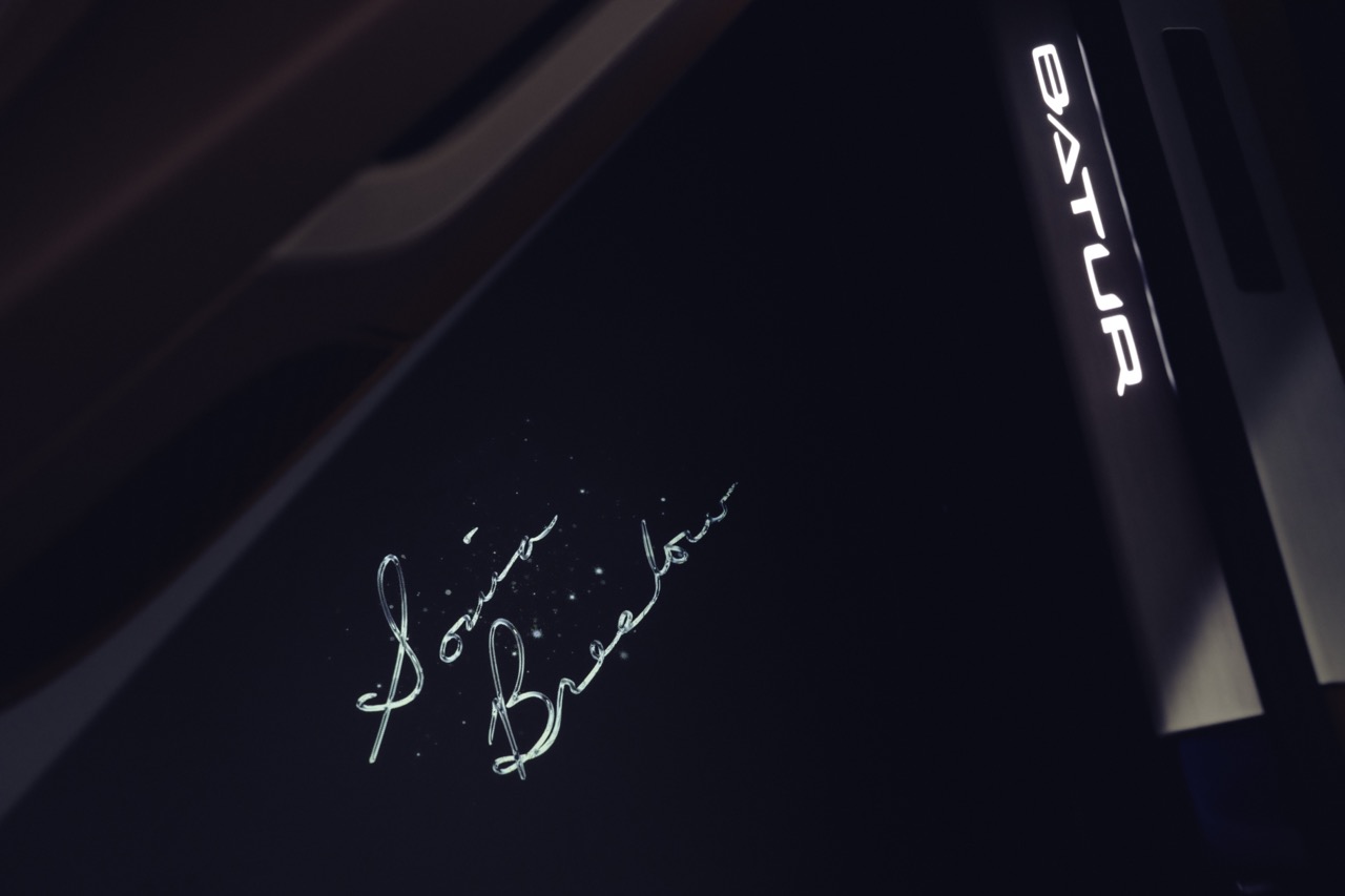 如果说外观是视觉的飨宴,那车厢内部就是一场材质革命的实验室。Batur Convertible #4 首次在汽车工业中应用了 3D 打印的铂金组件。这些贵金属被精巧地镶嵌在方向盘的正上方中心标记以及冷气出风口的拉桿上。这种将高科技增材製造与传统贵金属结合的手法,不仅提升了车厢的层次感,更赋予了车辆一种如艺术品般的收藏价值。车厢色调则选用了温暖的秋季色彩,包括褐色与焦糖色,并巧妙地以亮蓝色细节勾勒,将车外的色调自然地过渡到车内。