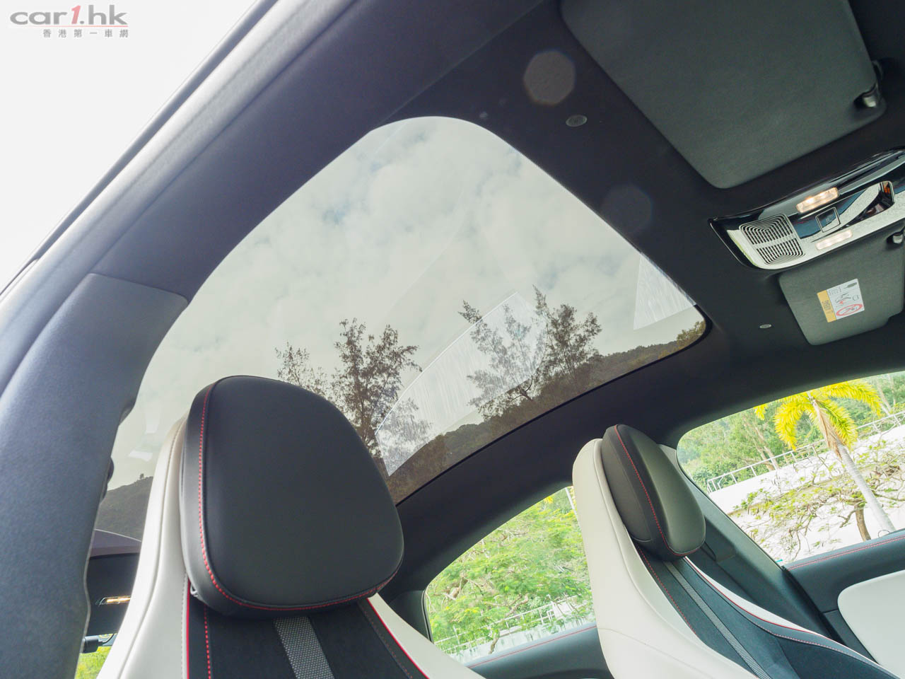 平治工程师指,电车的风阻每降低 Cd 0.01 便可提高续航 2.5%,CLA 的风阻只有 Cd 0.21。车子有减风阻轮圈、改良的前后轮胎扰流片,头灯和面罩有优化的接口和封边。车底板设计引用 EQE 和 EQS 的经验,现时接近全封闭,连悬挂连杆也给覆盖,后轮内拱与车身连接感少驳口。新出的车身颜色有 Aqua Mint 绿和 Clear Blue Metallic 蓝。所见的 AMG Line 头泵把例牌有“八”字翼、左右风口两撇“猫鬚”、银色头唇;特有的尾泵把惯常有垂直假风口,配 18 吋轮圈。车内有平底軚盘、红色缝线、连头枕跑櫈、黑胶粒铝脚踏。首次有的 AMG Line Plus 有亮黑色鸭尾尾翼、亮黑色发光门槛牌、19 吋轮圈、红色安全带。