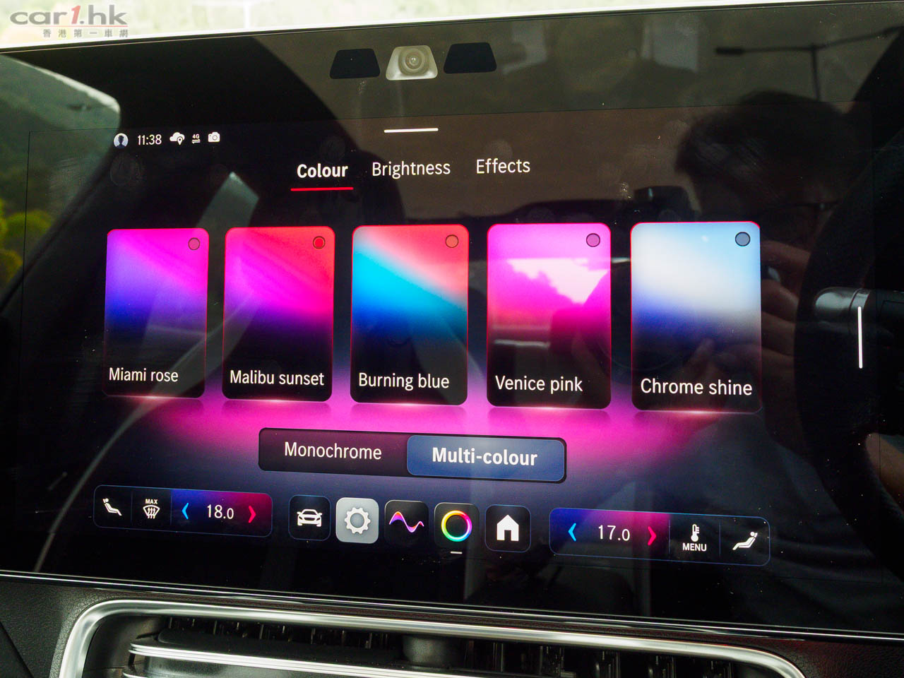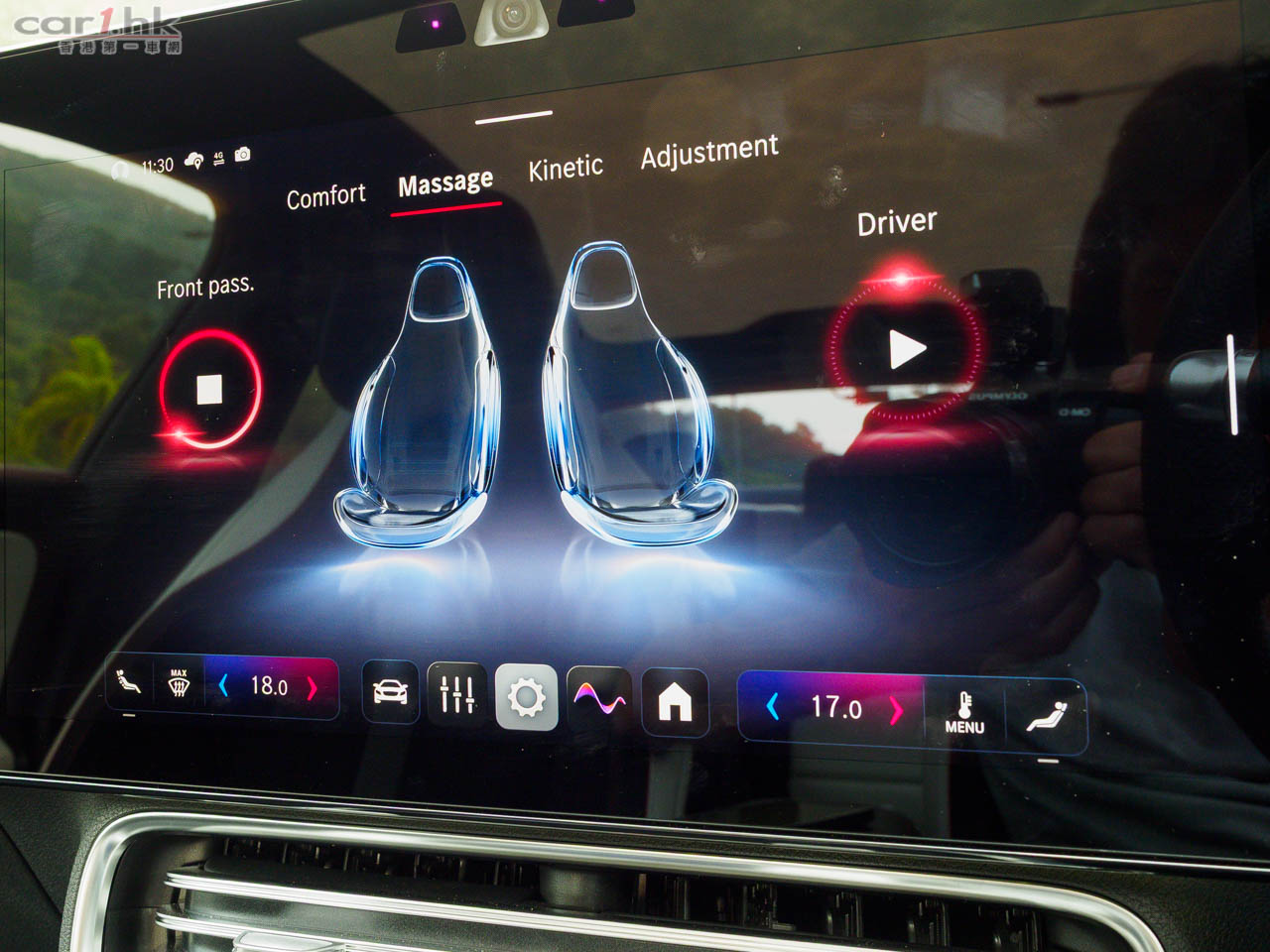适应过屏幕新的介面和图案后,内里的功能其实与以往大同小异;前座有按摩功能和 Kinetic 自动抗倾侧垫。
