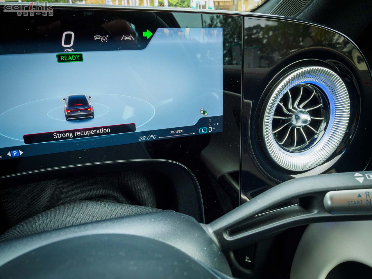 有 272 匹输出的后驱 250+,0-100km/h 加速需颇快的 6.7 秒(350 4MATIC 需 4.9 秒),属爽快但不至快到爆肺那种。不知是否还称为 Dynamic Select 的反应系统,有如常的 Comfort、Eco、Sport 模式,Individual 可自订三种踩油反应、两种軚盘重量、两种 ESP 稳定反应。新的悬挂系统给予属 A 系的 CLA 更细緻的乘坐感觉,2,055kg 的身躯感觉沉重,没有电油车的轻快,但掟弯尚算稳阵,大脚踩电时会感到车头车尾的动慼,算是有点玩乐味。在三连杆的新前轴下,嫌它軚感有点太过舒服,悬挂吸震时很直接,对比高级车款的平治是感到有不同。踩电时的虚拟“偈”声像个伤风的机械人“呻鼻”般“boo… boo… boo… ”,是搞笑多过似真车。所说的 2 速“尾牙”没有甚么感受得到,“单盒”制动也是正正常常。平治 EQ 车一向的軚盘左手拨片“-”、右手“+”的拖慢回充控制有新安排,CLA 改为单用右手的转波棒控制,推“+”、拉“-”,没有那么方便。不过同样有“D Auto”自动、“D +”滑行 、“D”正常拖慢、“D-”强拖慢,不似我们喜欢自主控制的话,“D Auto”都算够用。