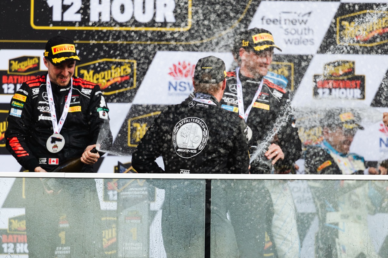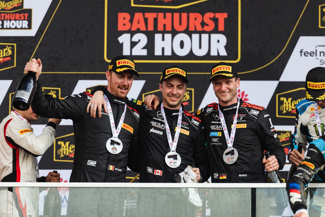 最令人啧啧称奇的是由 Maro Engel、Mikaël Grenier 及 Maxime Martin 驾驶的 888 号 Mercedes-AMG Team GMR 赛车。他们在排位赛表现欠佳,仅排在第 29 位起步。在高手如云的 GT3 战场,这几乎是被判了死刑的位次。然而,团队凭藉精準的油耗管理与两次安全车时段的完美“补油”策略,在比赛末段成功突围。这不仅是三位车手个人在巴瑟斯特的首胜,更是赛会史上首次有赛车从如此靠后的位次反超夺冠,为 Mercedes-AMG 创下继 2013、2022 及 2023 年后的第四座冠军奖盃。
