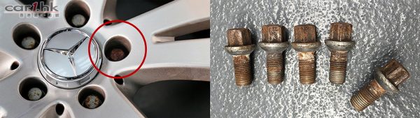 ▲ 图中原装螺丝拆自车龄仅数年的 Mercedes-Benz W212,肉眼已见每颗螺丝已出现不同程度的氧化及锈蚀,不但影响车辆整体观感,若情况恶化更有机会减低行车安全性。因此建议各车主定期检查一下轮圈螺丝状况,若发现锈蚀状况便应及早更换。