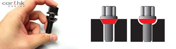另外值得注意的是,原装轮圈的安装孔大部分都属于称为的ball seat(斜座)设计;而改装轮圈则多为称为cone seat的(圆座)设计,因此若以原装螺丝去安装改装轮圈,就很大机会会破坏轮圈的安装孔了。