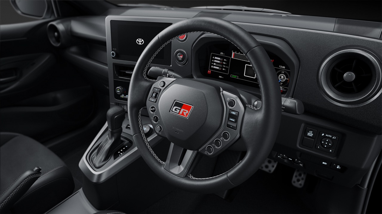 这次改进的核心在于“人车合一”的介面。Gazoo Racing 团队参考了职业赛车手的意见,将軚盘直径缩减了 5mm 至 360mm,缩减直径意味着驾驶者可以更快速地进行转向修正。更重要的是,軚盘抓握区(Grip area)被刻意放大,并取消了传统的拇指托(Thumb rests),这种设计是为了让车手在激烈的赛道或拉力操驾中,无论手部如何切换角度都能获得最直接的回馈。此外,考量到车手在转向 180 度时容易误触按键,新设计将軚盘上的功能键位置外移,彻底解决了激烈驾驶时的低级错误。