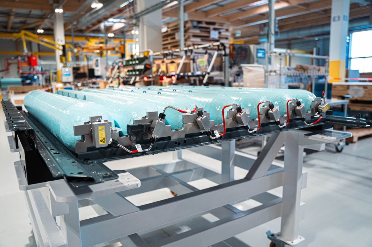 从技术层面分析,这套系统由七个碳纤维增强複合材料(CFRP)製成的高压储气罐组成。不同于传统的单一大型压力容器,这七个气罐以并行方式连接,并整合在一个坚固的金属框架内,形成一个由中央主阀控制的封闭单元。这种创新的“多腔体”设计已让 BMW 集团申请了多项专利。系统总计可储存至少 7 公斤的氢气,而从空槽加满至 700 bar 的高压状态仅需不到 5 分钟。这种安全、乾净且迅速的能源补充方式,完美弥补了纯电动车(BEV)在充电时间上的短板。