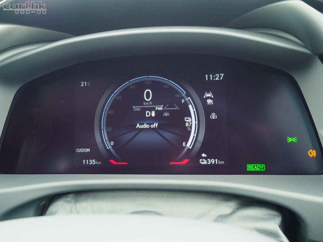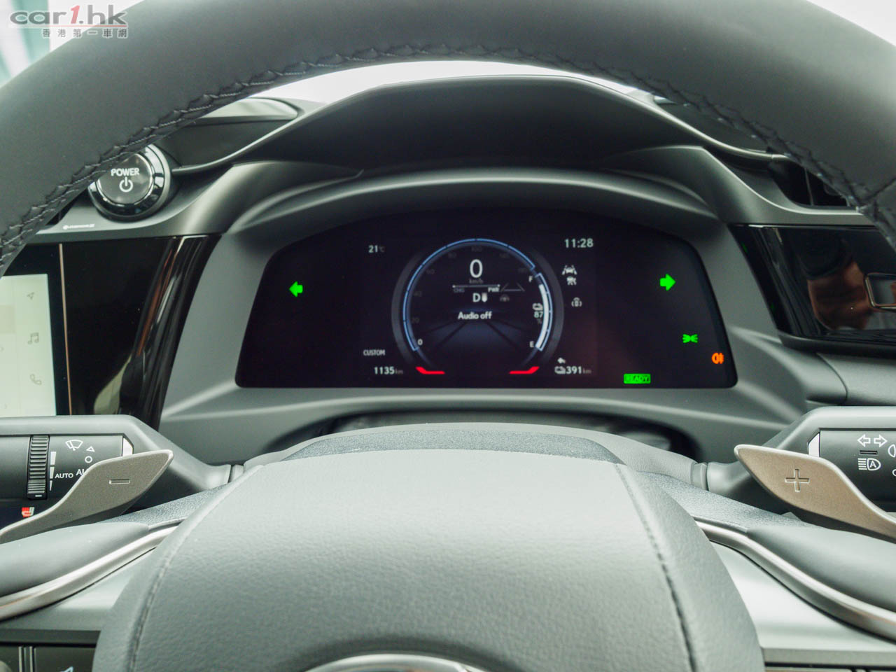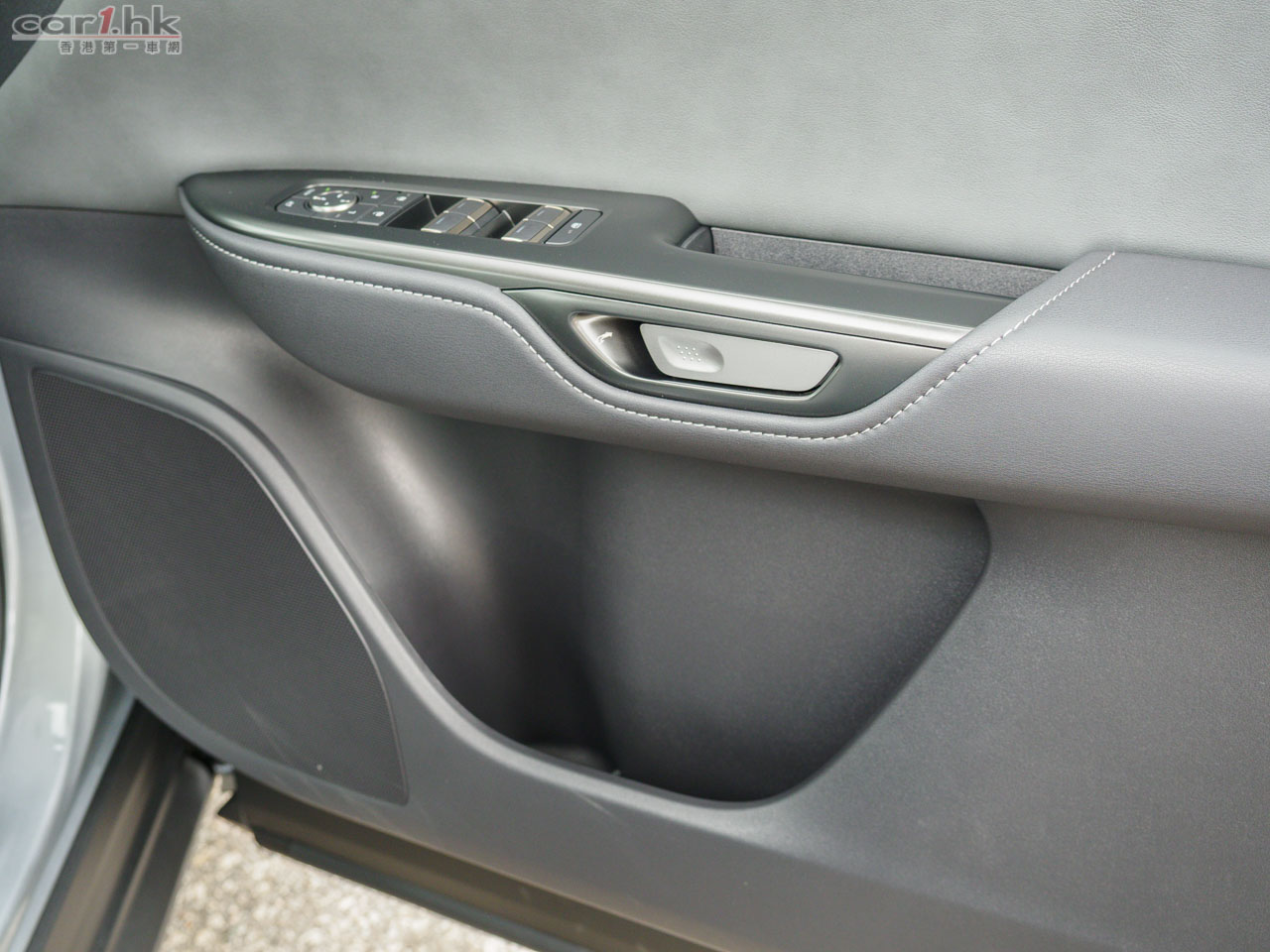 之前不见有的 Active Sound Control 会在驾驶时发出“wee…wee…呜…呜…”声。配备 Lexus Safety System+ 3.0 主动安全系统,包括懂侦测行人和单车的 Pre-Collision System 前方自动煞车、Lane Departure Alert 离线警示、Lane Tracing Assist 离线自动扭軚、Emergency Steering Assist 路旁障碍自动扭軚、Parking Support Brake 倒车障碍自动煞车、Rear Cross Traffic Alert 后方横向障碍警示、Blind Spot Monitor 盲点有车警示、开门有车警示和不准开门 Safe Exit Assist。豪华实用配置上,车子设有电子雾化、即按即变白的两截 Low-E(Low Emissivity)隔热天幕。由摩打控制四只车门索紧和解锁的 e-Latch System 电子门锁,拉门的一下有少少迟滞,不像手动门一拉即开。前座有通风和暖气;后排中桥控板有冷气风口、两个充电插头,但不见了旧款后座有的暖气开关。电动车惯有的平地台令后排摆脚舒服。中桥有下层胶兜,门边例牌有樽格。冷气系统有 nanoe X 空气净化功能。四正的尾箱有下层载物格。V2L 有两组 220V / 1500W 插头。
