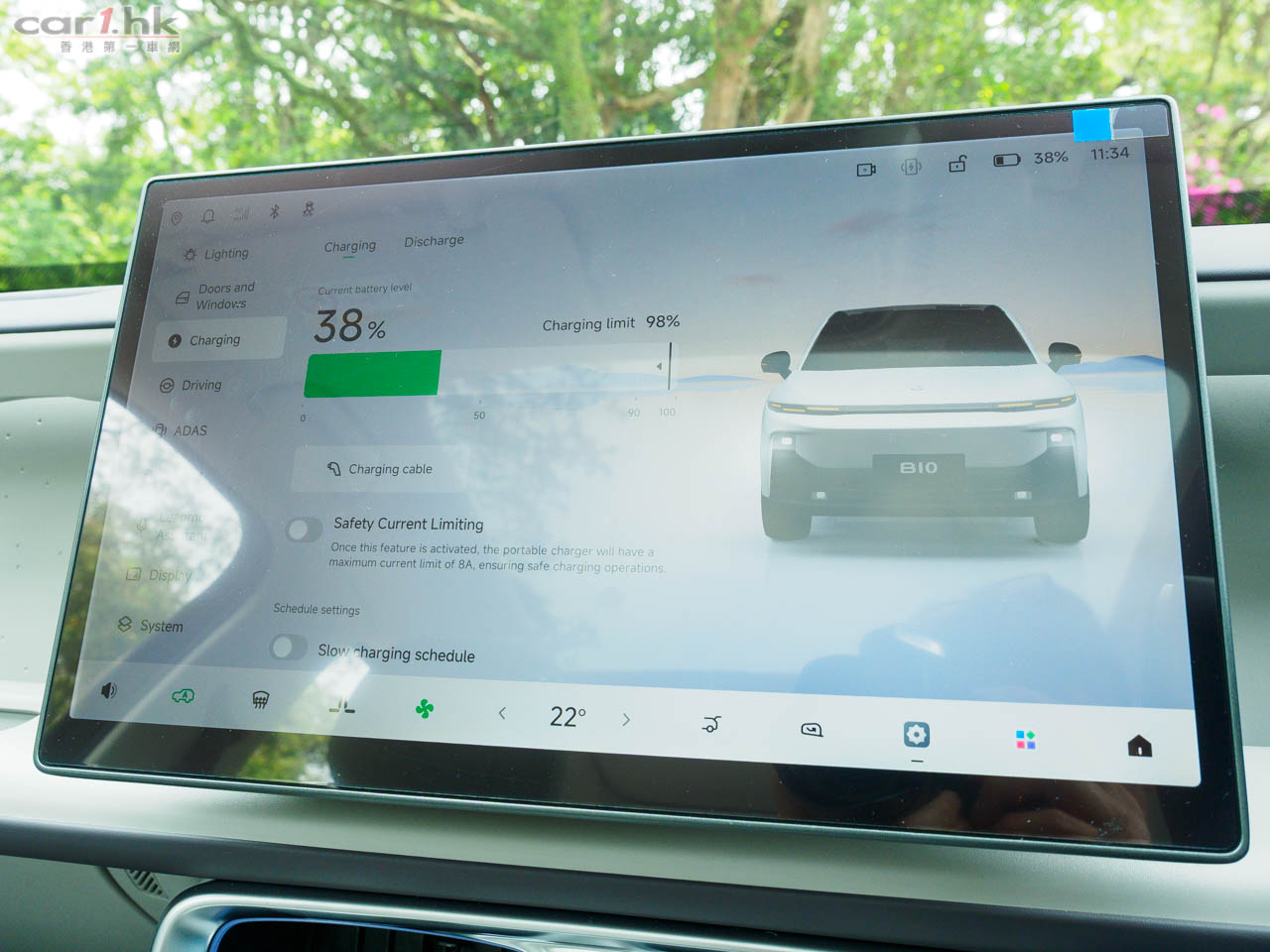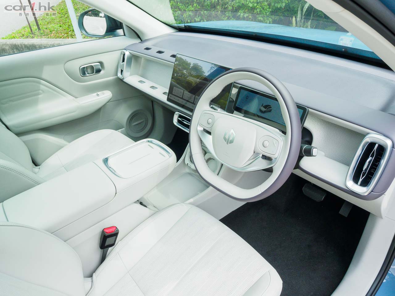B10 的车厢给我们最大的感觉,是它并不因为平价而寒酸。在业界循例的大/细屏幕式錶板之下,它的中控台至门板饰件有像“盲文”的粒粒装饰,门边窗制像平治 C-Class 般有条柄伸出来,哑银色的冷气风口有像“窗花”的设计,乘客面前的錶台上下有六个似是没有功能的通窿,我们倒觉得可给疑犯铐上手扣,车厢色调有黑色和这部像实验室的浅灰,座椅套採用竹炭纤维,两柱軚盘有点土头土脑,但胜在有两粒“转盘”可以拨动,整体车厢格调开扬、舒服,在存有国货味的用料中给你类似 Hyundai Inster 那种乾净、得意的感觉。实用性方面,其前座好像 Honda Jazz 和 AION UT 那样,拆除头枕可挨后与后排拍在一起变床。大面积天窗有电动窗帘。后排中央扶手位置有充电插头、小抽屉,冷气风口同是“窗花”式样。採用高通 8155 晶片的屏幕系统,内里可找到前座通风/暖气、軚盘发热、尾门张开高度、天窗开窗帘幅度,另音响有四种声场选择,在冷气风口框设有光条的 64 色气氛灯,可选实色、单色呼吸、多色呼吸模式。ADAS 安全系统有 AEB 前方自动煞车、LDW 车道偏离警示、LKA 车道偏离扭軚辅助、LCC 车道置中、BSD 盲点有车警示、DOW 开门有车警示、RCW 后撞警示、RCTA 后方横向障碍警示、RCTB 后方横向障碍煞车、DDAW 疲劳警示、ADDW 分心警示,25 万余元车仔前后左右看个透彻。