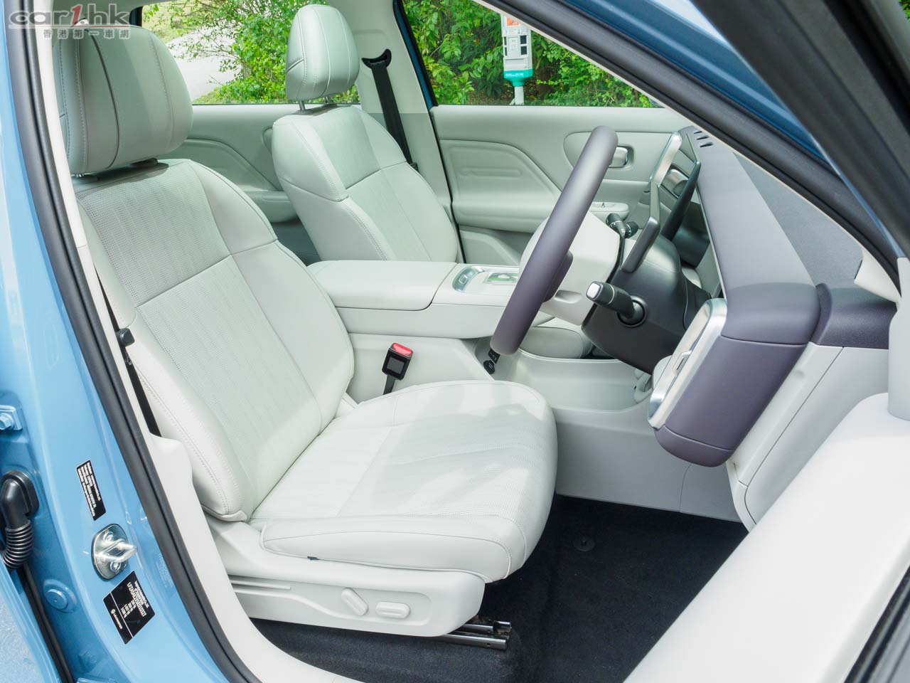 车厢色调有黑色和这部像实验室的浅灰,座椅套採用竹炭纤维,前座有通风/暖气,整体车厢格调开扬、舒服。