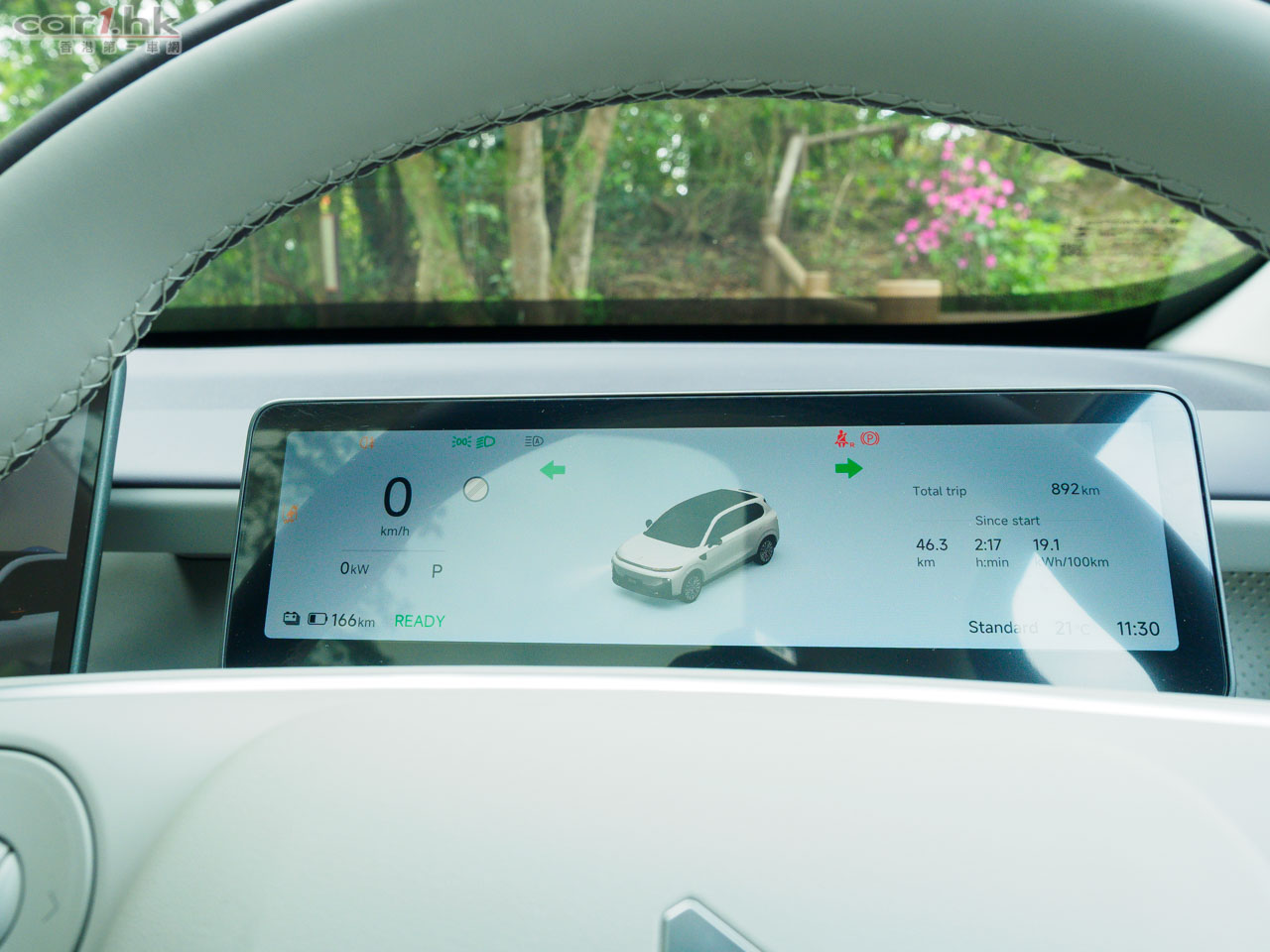 有部车仔又有些数字的仪錶与大围做法没大分别,右边可“碌”出 Trip 计/耗电量、地图、蓝牙音乐。