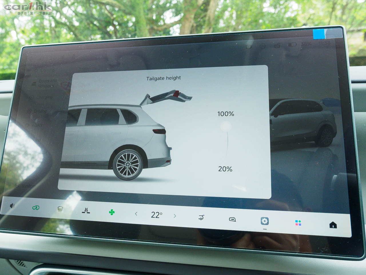 捽屏幕可控制尾门张开高度和天窗开窗帘幅度。