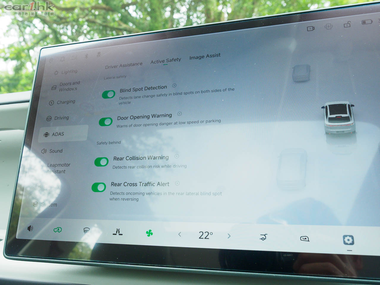 安全系统有前自动煞车、离线警示(车道偏离)和扭軚、盲点和开门有车警示、后撞警示、后横向障碍煞车、疲劳和分心警示,25 万元车仔前后左右睇匀。