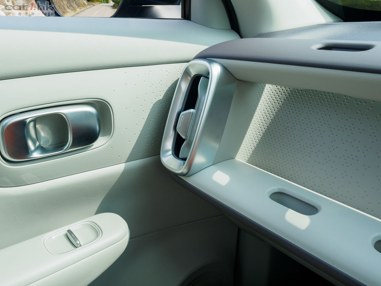 錶台至门板饰件有像“盲文”的粒粒装饰,门边窗掣像平治 C-class 般有条柄伸出来,哑银色的冷气风口有像“窗花”的设计。