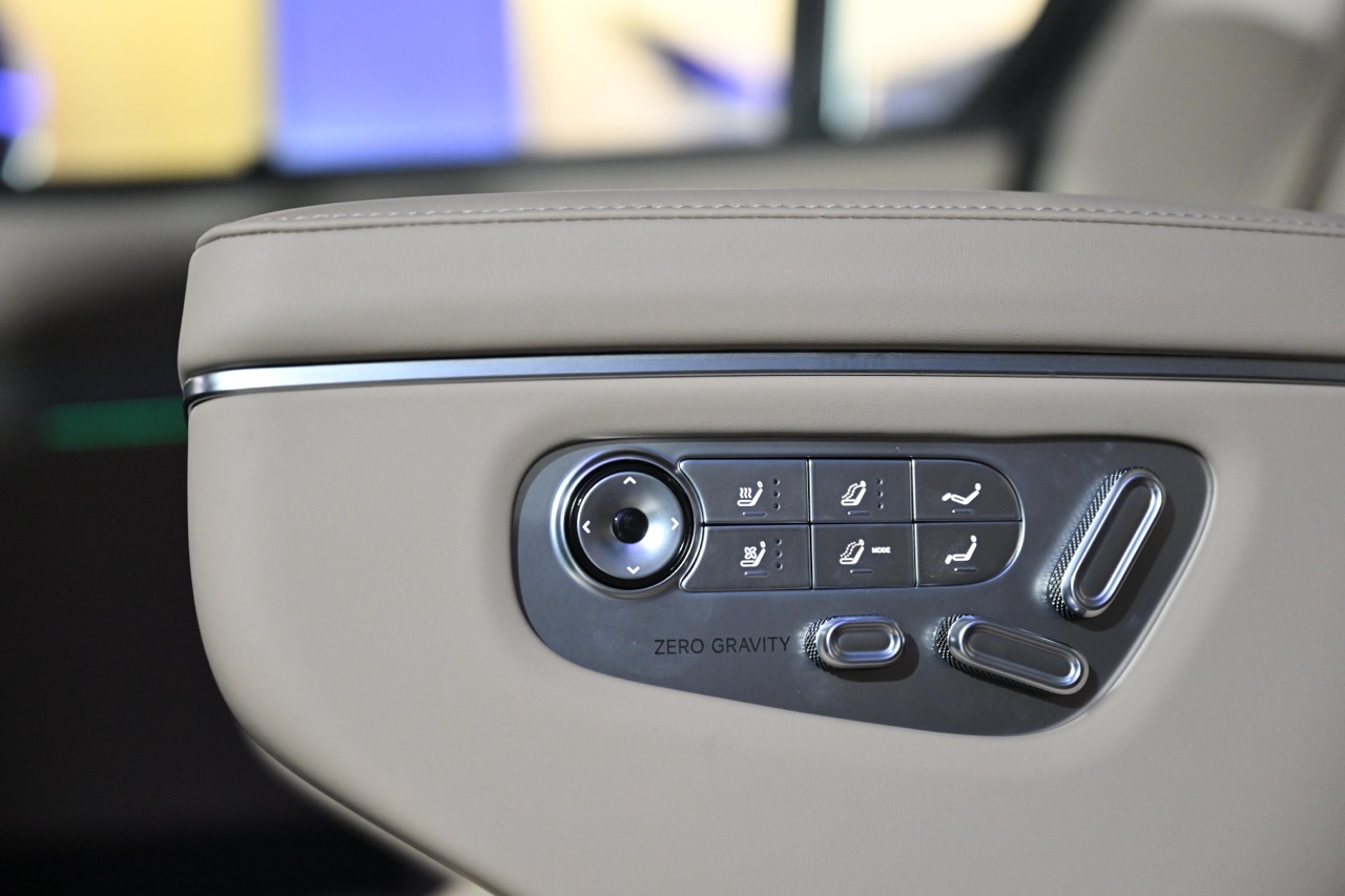 座舱设计则展现了奢华与机能的完美结合。车内採用业界唯一的三排电动三折叠座椅,支援 4 至 7 座的多种配置转换,灵活应对不同载物或乘车需求。为了提升静谧性,新车导入了 RNC 座舱主动降噪技术,透过音响发放反向声波抵销路噪,并在前方配备双侧静音电索门。娱乐系统则升级至 21.4 吋超大屏幕,结合 27 个扬声器的剧院级音响系统,配合 3.6 米环绕式氛围灯,打造出高品质的流动休闲空间。